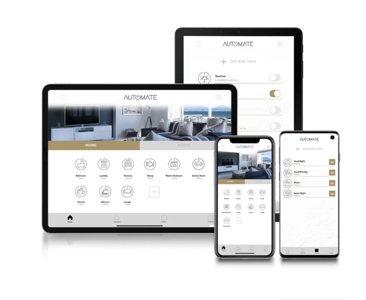 Älykoti tarkoittaa kodin laitteiden – kuten moottoroitujen kaihtimien – ohjaamista etänä älypuhelimella tai tabletilla yhteyden kautta.