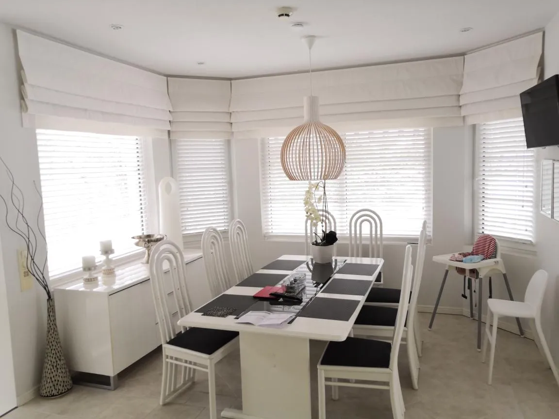 Sisustuselementti samalla: kaihtimet toimivat myös tilan visuaalisena osana, eivät pelkkänä aurinkosuojausratkaisuna.
