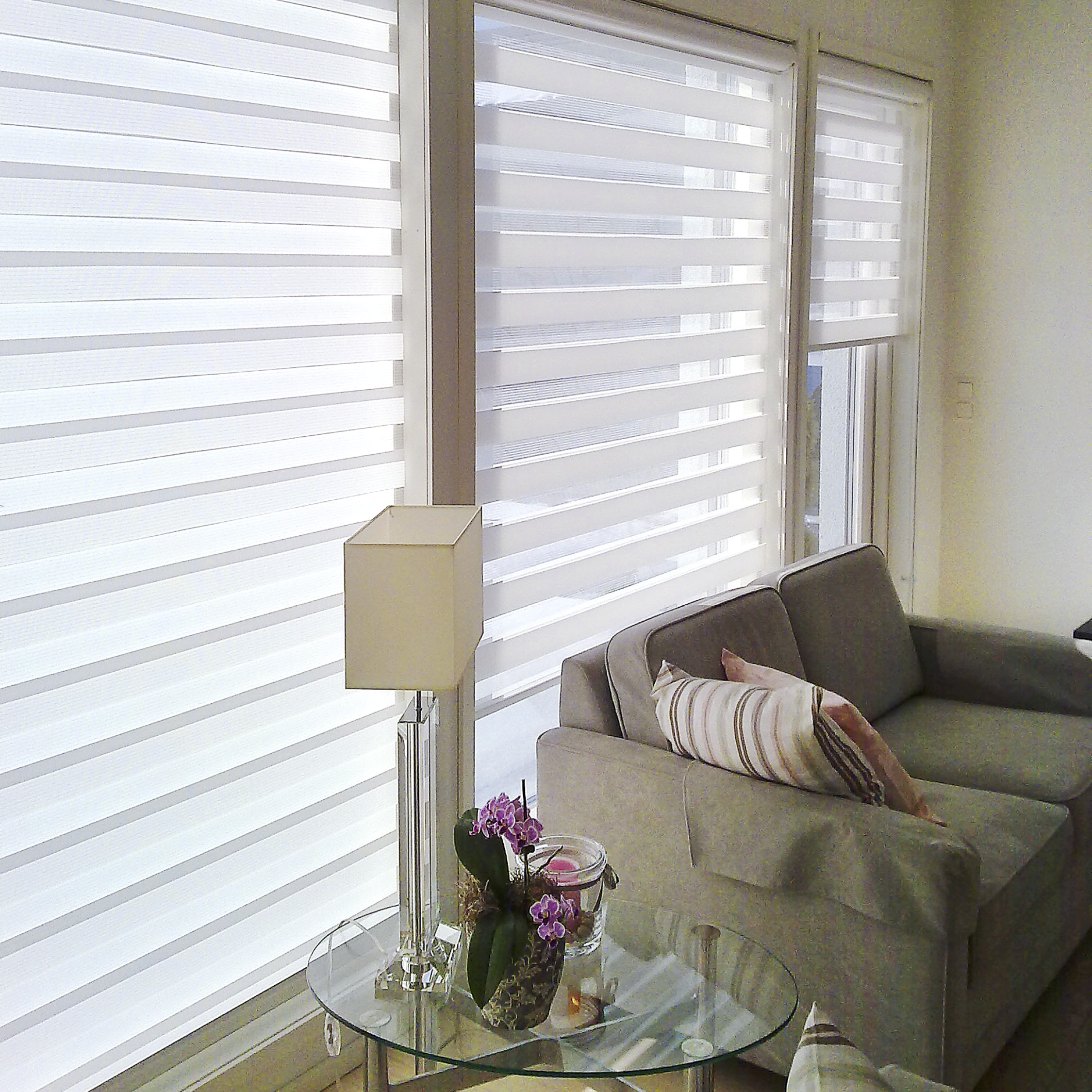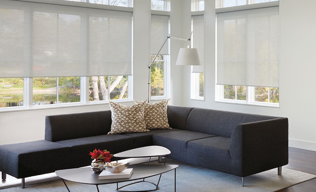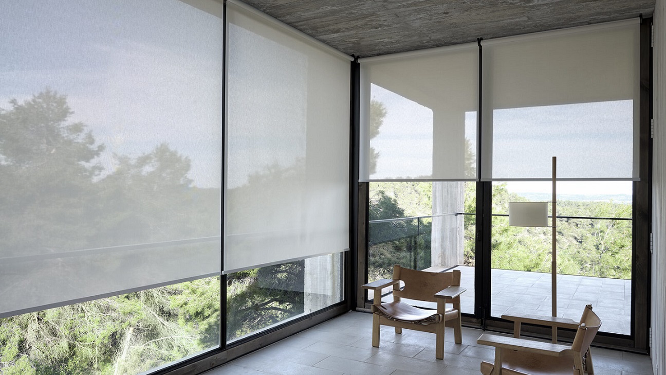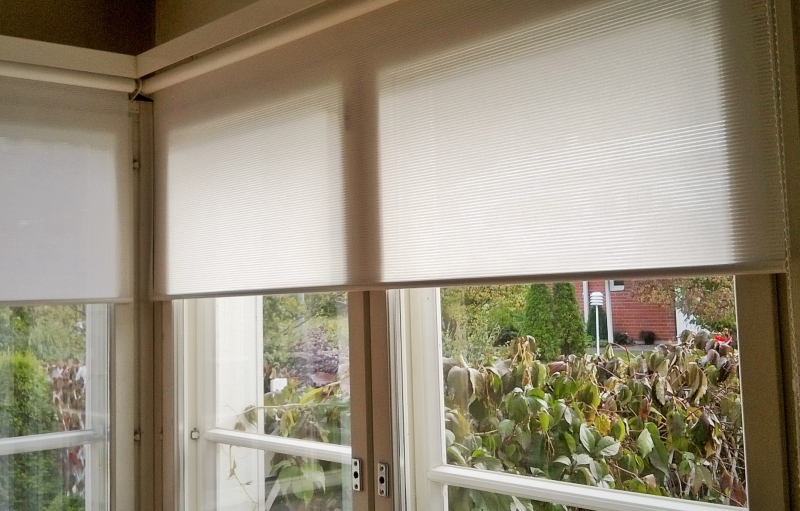 Säädettävä valonhallinta: screen-kankaat antavat näkymän ulos mutta torjuvat lämpöä, pimentävät kankaat puolestaan sulkevat valon täysin.
