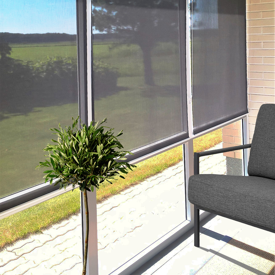 Screen-kankaat: vähentävät häikäisyä ja lämpöä, säilyttäen näkymän ulos.