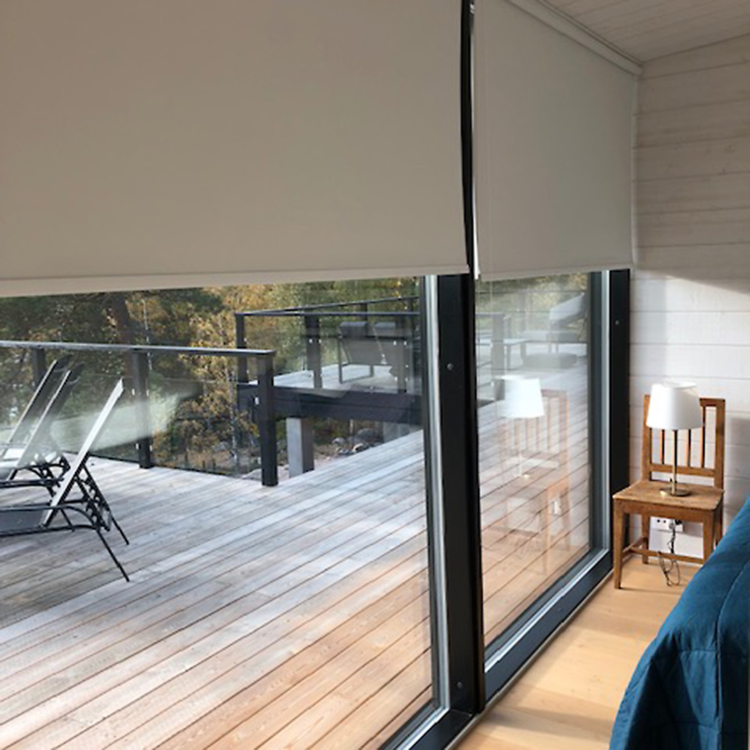 Tehokas valon- ja häikäisysuoja: rullakaihtimet suojaavat sisätiloja kirkkaalta auringonvalolta ja vähentävät häikäisyä myös kesähelteillä.