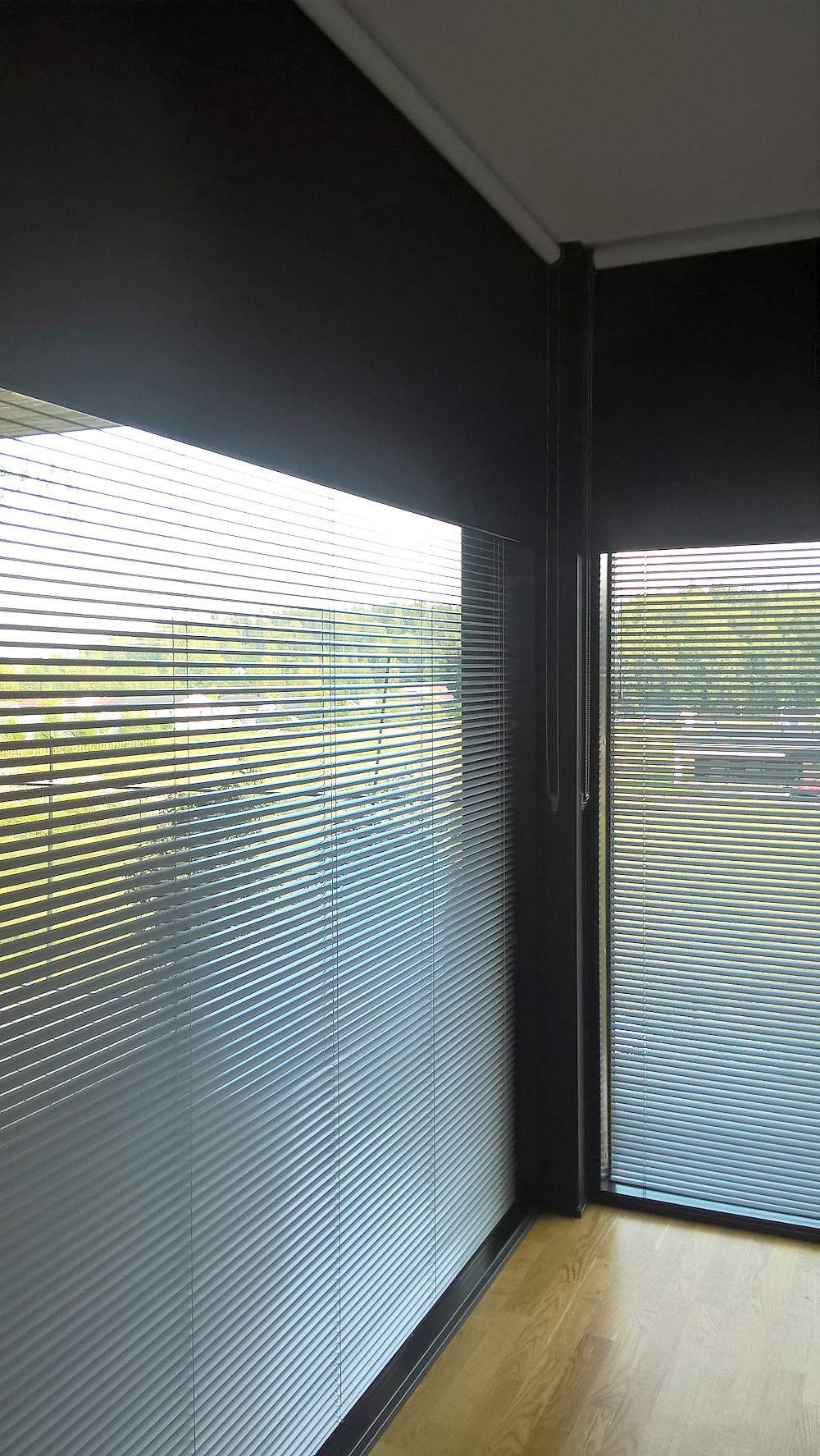 Monipuolinen aurinkosuoja: säätelet valon määrää ja näköyhteyttä nopeasti säätämällä säleiden kulmaa.